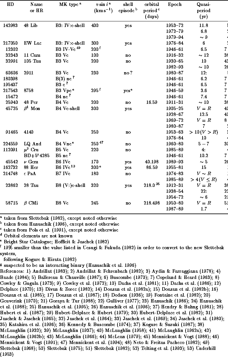 taken mainly from Hanuschik (1996) and Pols et al. (1991), respectively.